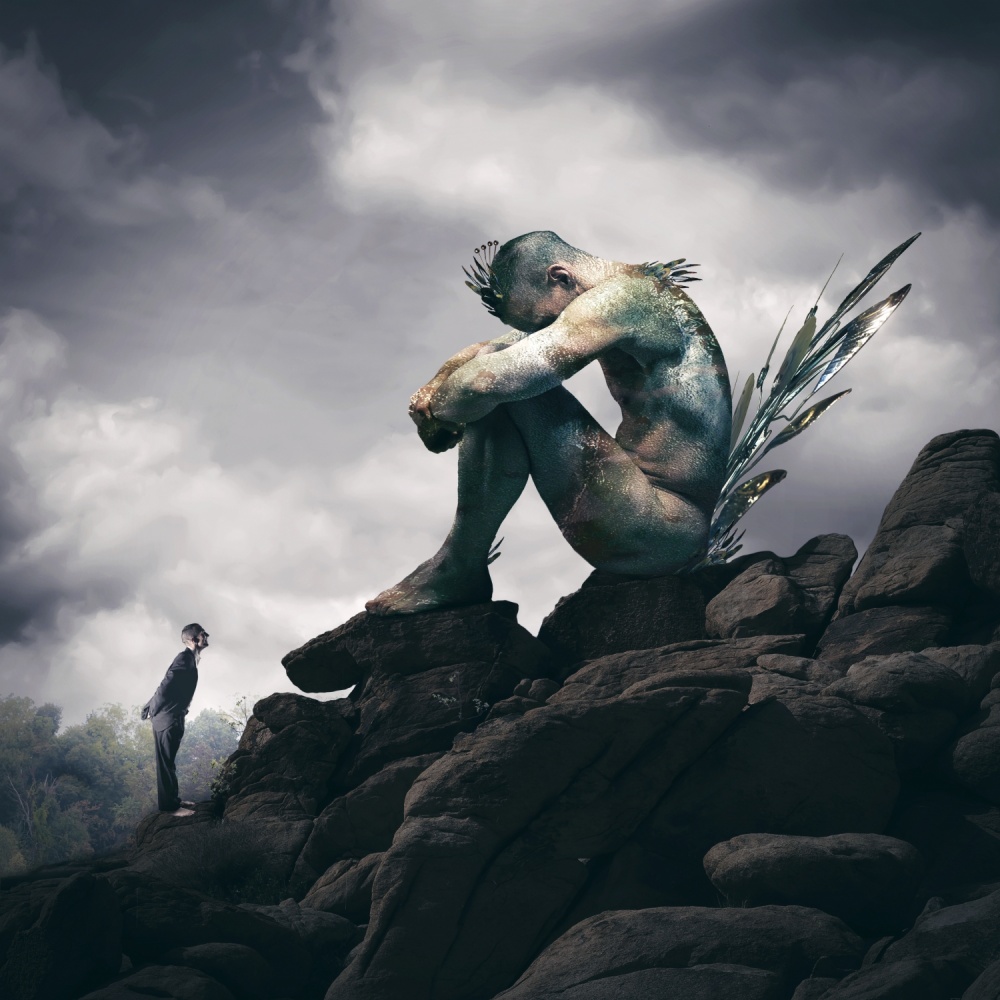 It has the potential to imply story or encapsulate a concept or idea. Much is made in photography circles about the "story" - what is the story? I happen to think it really is not possible to tell a story in one image - for anyone. It is the equivalent of one frame of a film. Impossible to fill one static image with enough information to tell a complete story. But, it is possible to imply one, or to give some elements for the viewer to imagine and build a story from the visual language you provide. I think images that are disturbing, surreal or display heightened reality lend themselves to it more than other genres. They can remind us of dreams capes or nightmares, or maybe even some of the fantastical images we grow up with in children's books. I think of Carl Jung and his archetypes when I build - this man is not the point, but who or what he represents is. This is not just a tree, it is a metaphor.