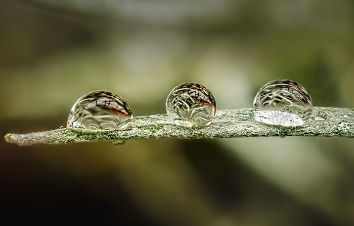 When it stopped raining that day, I went out into the garden to find water droplets on plants. I found an ideal subject and brought it inside, into a makeshift studio lit with natural light.